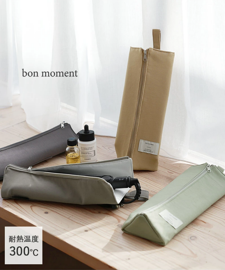 使ったばかりの熱々ヘアアイロンやアイロンブラシを、そのままサッとしまえるbon moment(ボンモマン)のヘアアイロンポーチです。