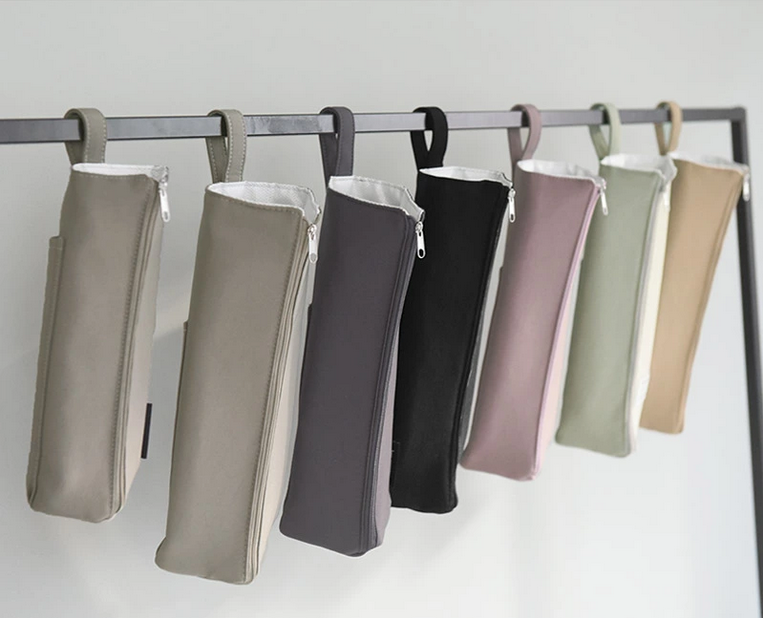 ファスナーで開閉できるポーチタイプなので、持ち運ぶときは閉じて、棚に置きっぱなしにする時は広げてなど、用途に応じて使い分けできます。