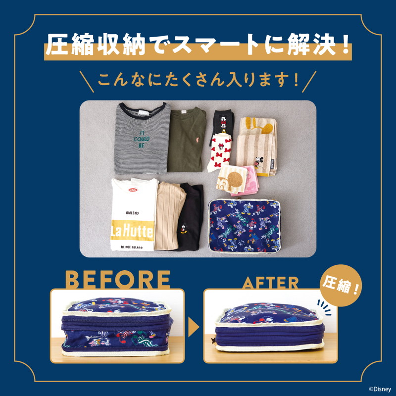 MICKEY AND FRIENDS圧縮収納ポーチパジャマパーティーデザイン