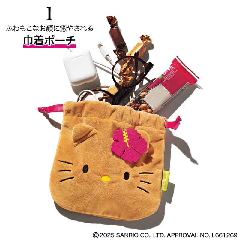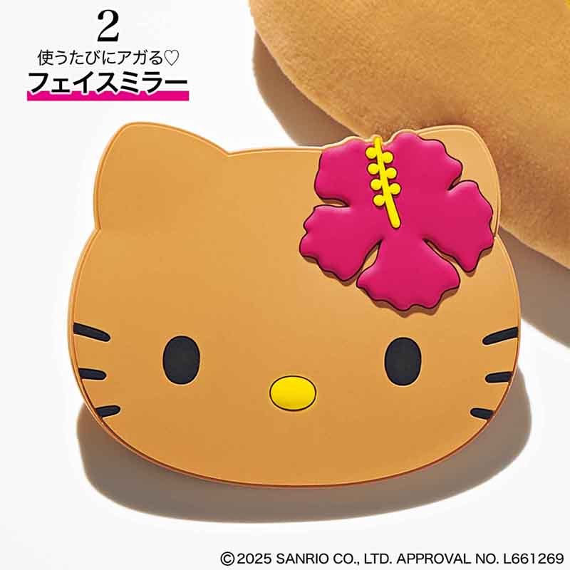 [ハローキティ]日焼け ハローキティフェイスミラー&巾着ポーチ