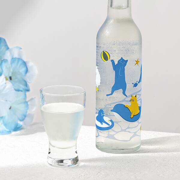 【季節限定】猫が描かれた、爽やかなデザインボトルのお酒