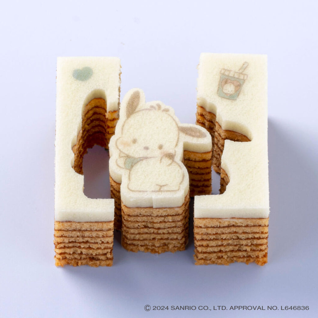 一枚ずつじっくりと丁寧に焼き上げた平焼きバウムを、甘えるポーズのサンリオキャラクターズの形にカット。