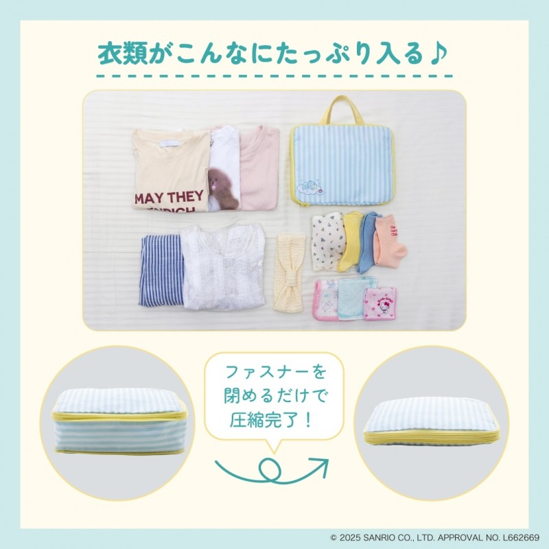 衣類や小物を入れてファスナーを閉めるだけで、かんたんにぎゅっと圧縮できる便利アイテムです。