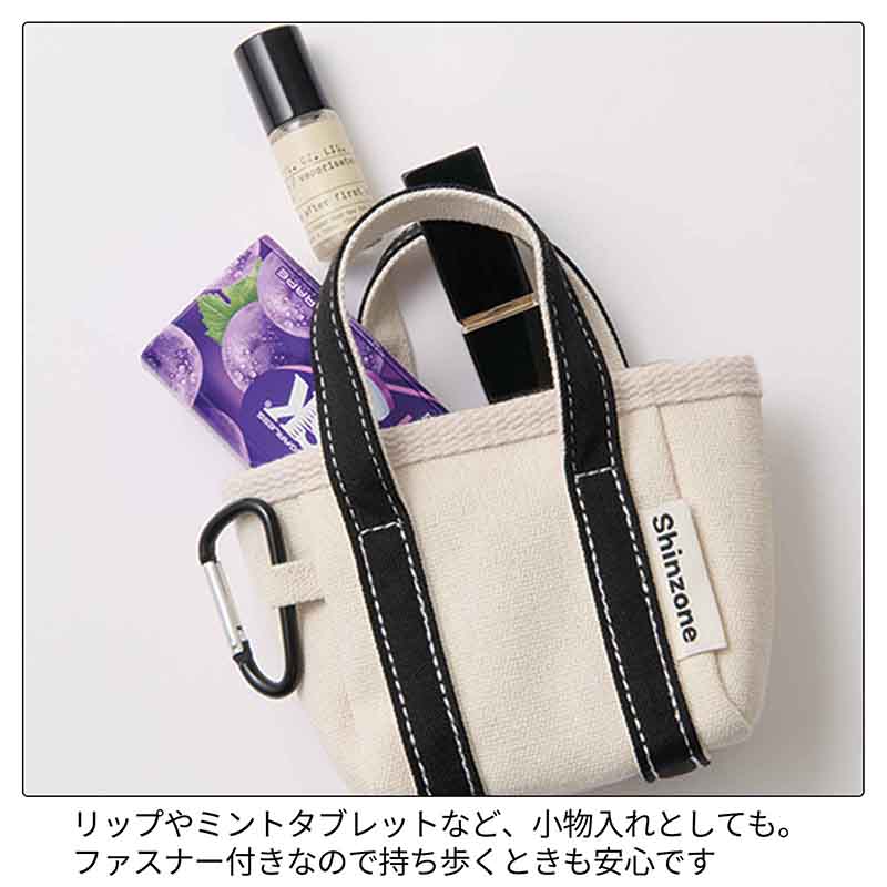 ファスナー付きなので、リップやミントタブレットなどの小物を入れても安心。