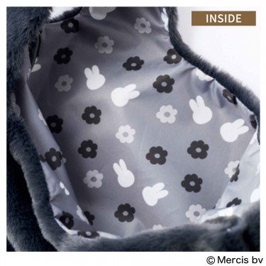 内側には、落ち着いたモノトーンの花柄とミッフィーが並ぶ総柄をあしらい、開けてもかわいい仕上がりに。
