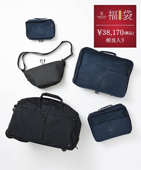 1~3泊の旅行にぴったりな3WAY仕様のTROT ダッフルキャリーをメインに、ソフトショルダーやオーガナイザーを組み合わせた計5点入りの福袋