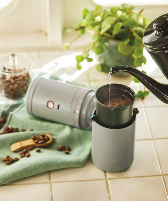 コーン式電動ミル・ドリッパー・真空タンブラーが一体になっていて、豆を挽くところからドリップまで、これひとつで完結。思い立った瞬間に、挽きたての一杯が楽しめます。