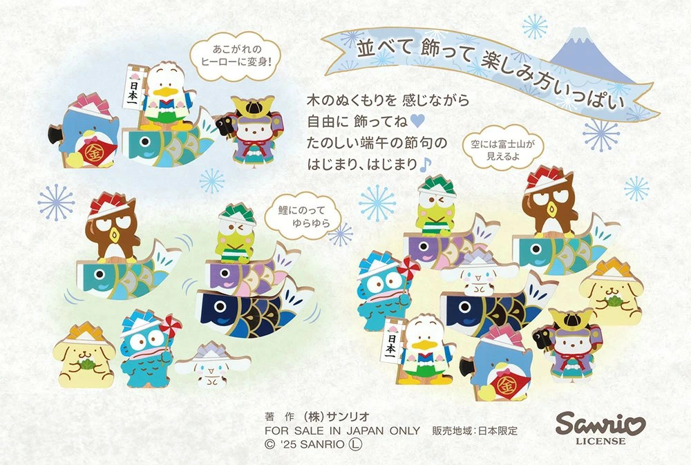 サンリオキャラクラーと鯉のぼり、かぶと、桃太郎、金太郎など端午の節句を祝う人形や道具が勢ぞろいしました。男の子の健康と幸せを願いながら、心をこめて飾ってお祝いしましょう! サイズ 幅×奥行×高さ34×13×31(cm) パッケージサイズ:幅×奥行×高さ34.5×13.5×35(cm) 木製の五月人形なので、木のぬくもりを感じながら自由に飾ることが出来ます。サイズもコンパクトなので、移動も簡単に出来ます。 リンク