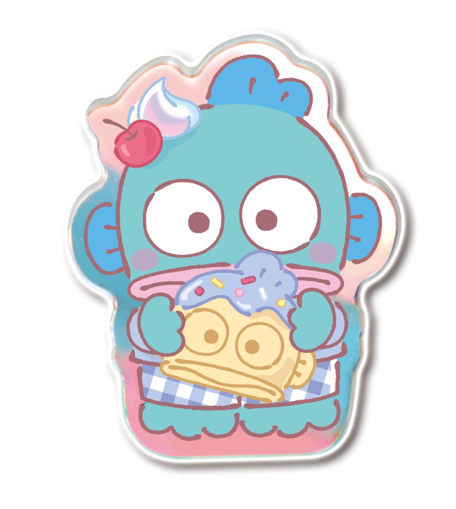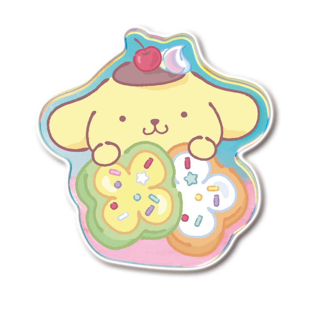 「サンリオキャラクターズ」デザインのアクリルクリップとチューインガム1個が入っています。