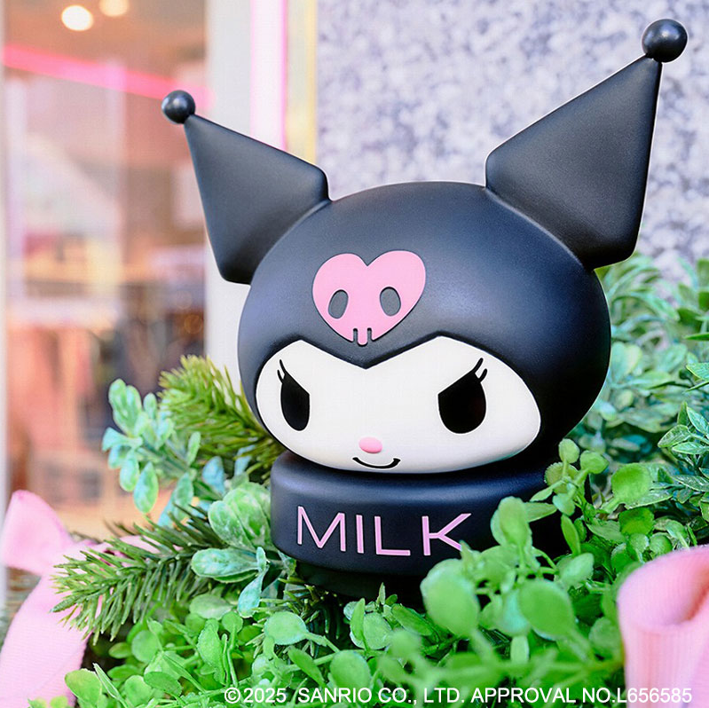 ・ 黒いずきんのどくろは、MILKとのコラボ限定のハート型。・ 台座にはMILKのロゴ、背面にはKUROMIとMILKのダブルネーム入り!